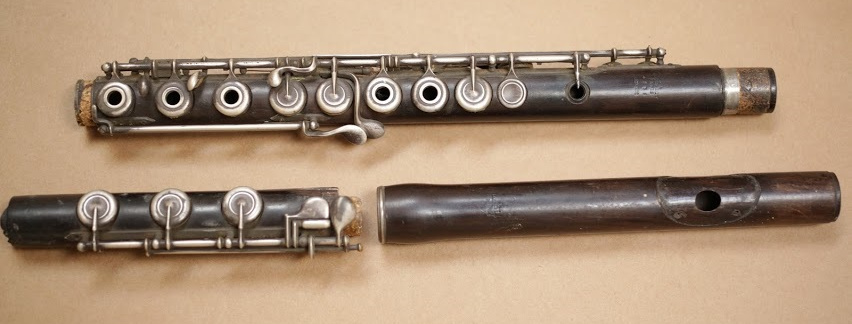 Lot #4339’s usefulness as a flute ended when it was repurposed as a lamp. The fatal blow was a broken footjoint tenon. In addition, there is a long list of major and minor issues, such as a missing C# cup, some stuck steels and missing connecting hardware and rings, a missing silver lipplate, and a sizeable crack on the headjoint. The centerjoint seems to be more or less intact and the silver keys have acquired a beautiful patina and smooth feel, possibly from years of daily practicing. This wood Louis Lot is over one hundred years old. If its demise happened twenty years ago, it had already done its duty and served many owners. Somehow, for this flute, I could imagine a glorious past and a bright future. Believing in a viable end game gave me hope and motivation to begin and complete the project.