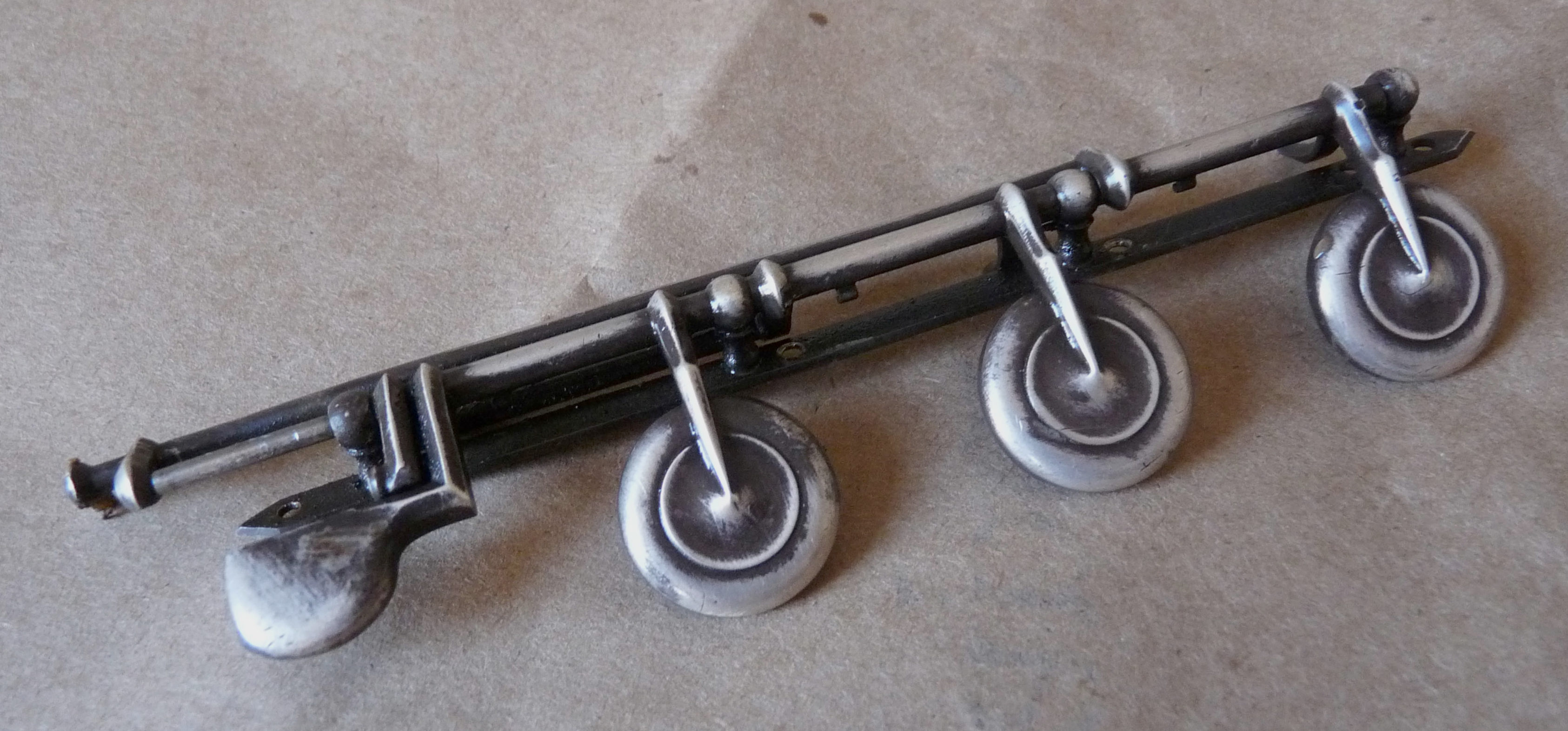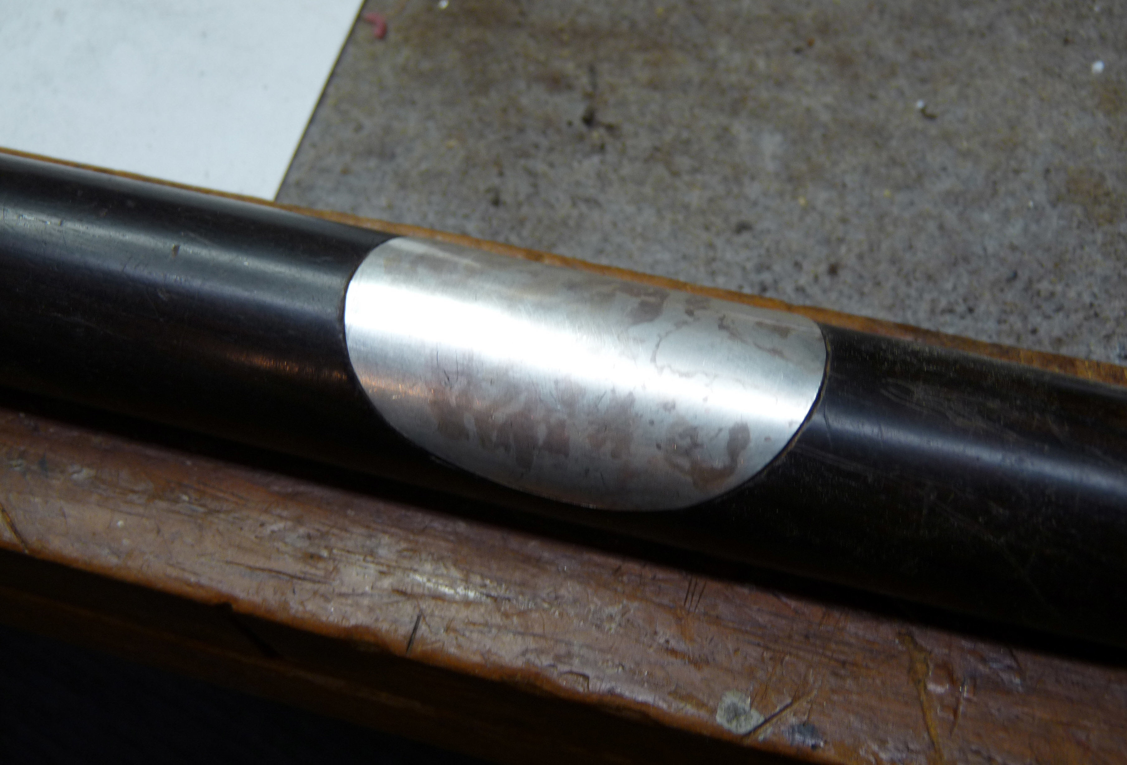 After repeated heating and soaking in various solvents, including vinegar and Knock’er Loose, the footjoint keys finally came loose from the steel. The old steel was rusted beyond repair. A new one had to be made. A common, quicker solution would be to use off-the-shelf steels and ream up the mechanism tubing to fit. However, this flute used an .092” steel, which was smaller than most modern steels. I decided to make a properly sized steel, avoiding the need to ream the original posts and mechanism tubing, thus preserving another original aspect of this flute. With a perfectly straight new steel in place, I was able to align the long bridges and straighten the rib.