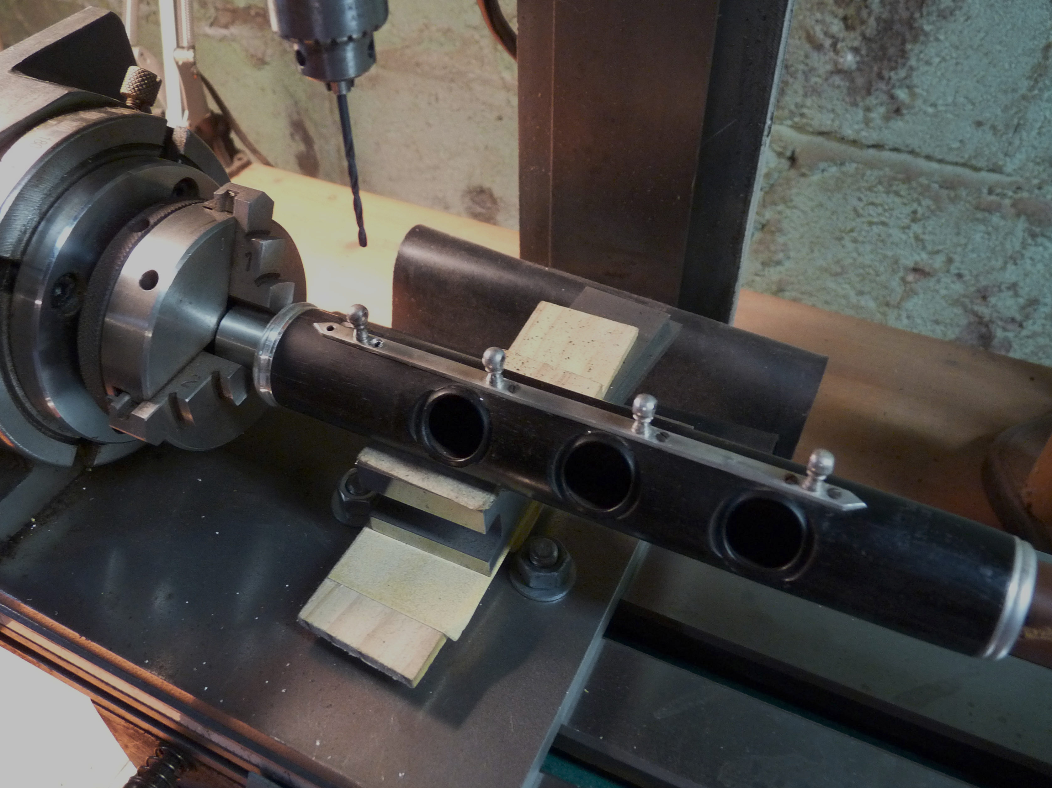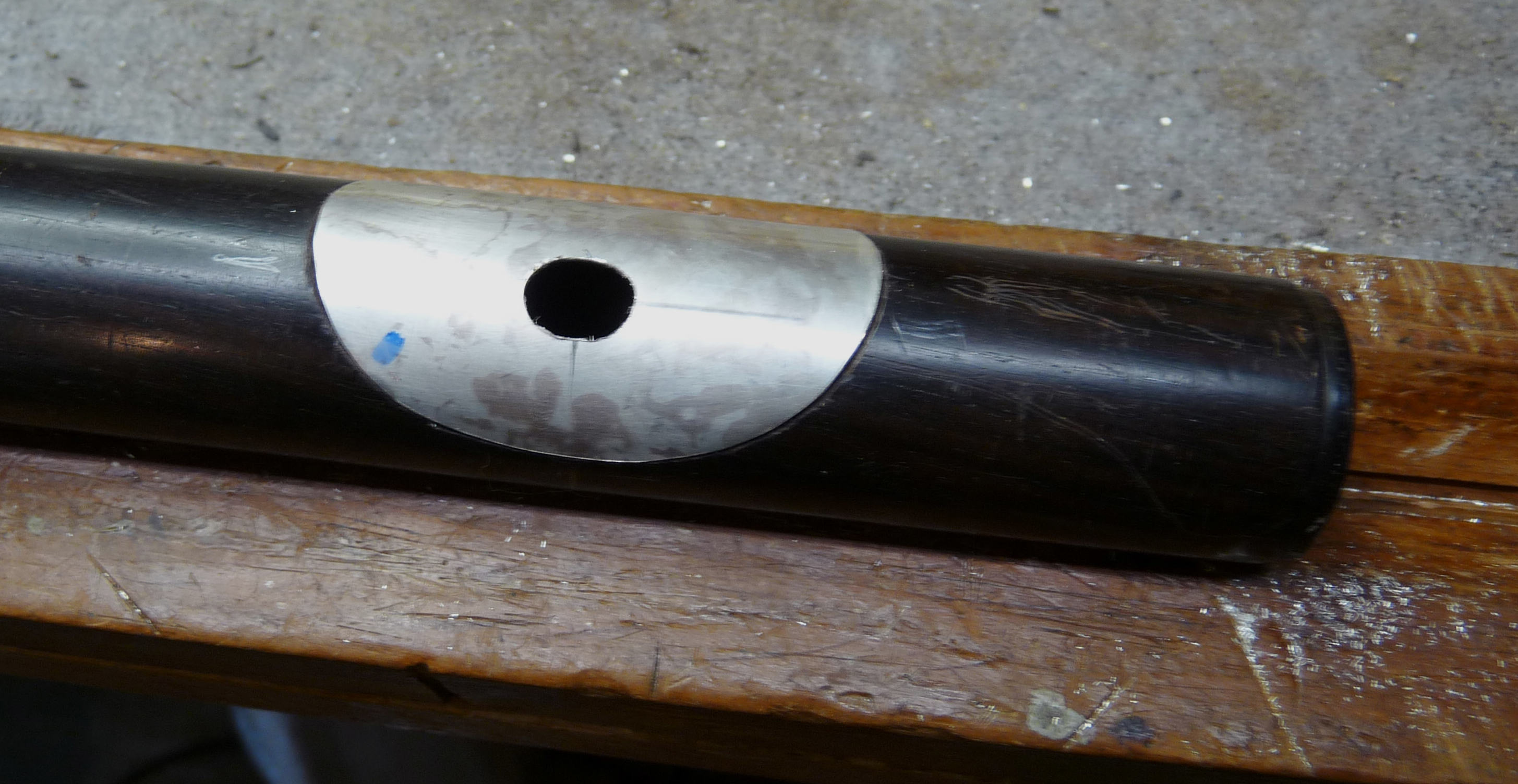 The footjoint was finally finished. The extra length of the steel could easily be trimmed, slotted and the ends rounded with just hand tools. By and by, a footjoint that seemed beyond repair reached the padding stage. Fortunately, the tone hole seats were undamaged, so padding should go well.