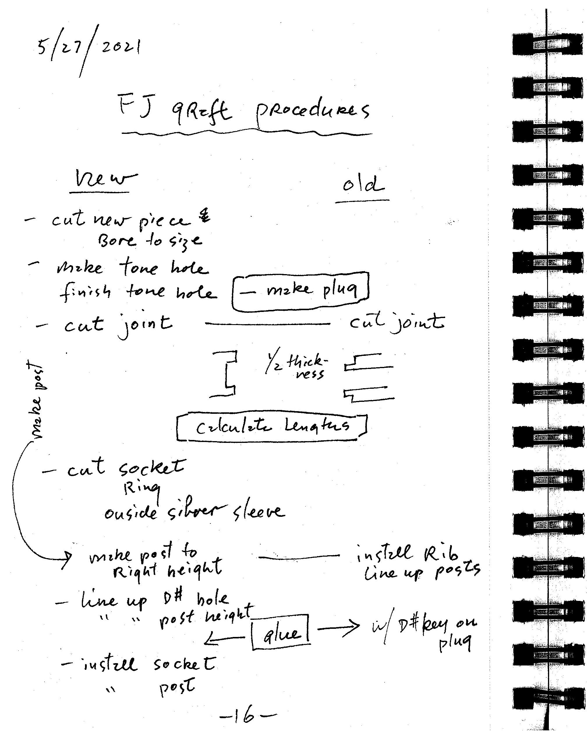 Once the wood footjoint was laid bare, I was able to take measurements and come up with a plan of action. These measurements were compared with those of another wood Louis Lot, #4041, which shared the same specifications. With a sister flute as a reference, I felt confident that the reproduced parts would be authentic in both intention and execution. I used modern tools and adhesives, grenadilla wood that was harvested decades after Louis Lot’s time, and a generic sterling silver alloy instead of “French silver”. The Material Cause was undoubtedly altered in the most precise terms, but the Final Cause was starting to revert back to some of its original notion. The Efficient Cause now had my name added to it - a bit of pride that I privately enjoyed before it would become an anonymous repair years from now.