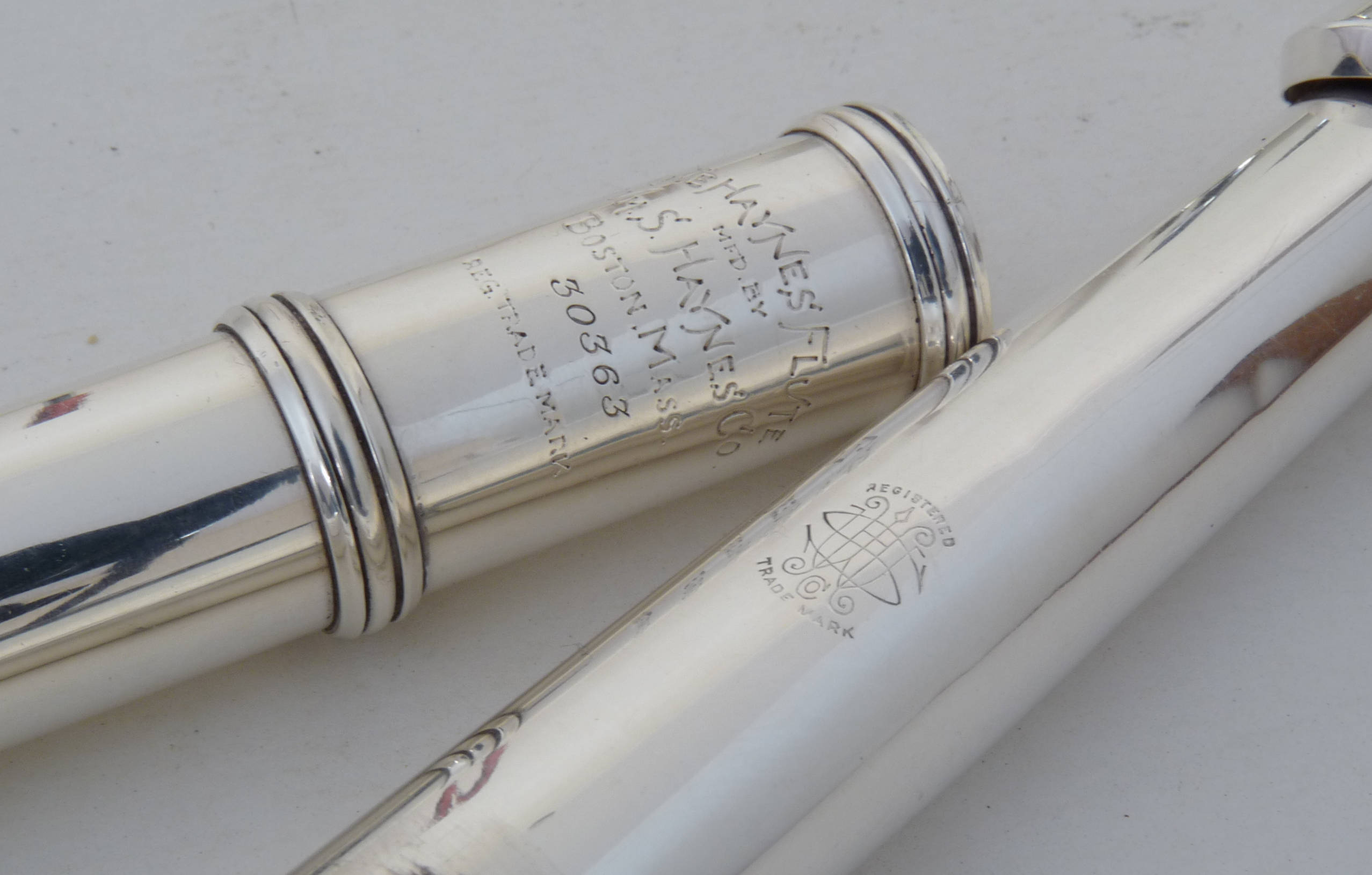 Haynes #30363 is in exceptional playing condition. While it exhibits some areas of deep tarnish, the pads appear remarkably fresh, suggesting a recent repad and the pads are sealing well. The mechanism is in good condition. It plays with a sweet and singing tone in all registers, easy articulations. The flute feels light and vibrant. It comes in its original case in poor condition.