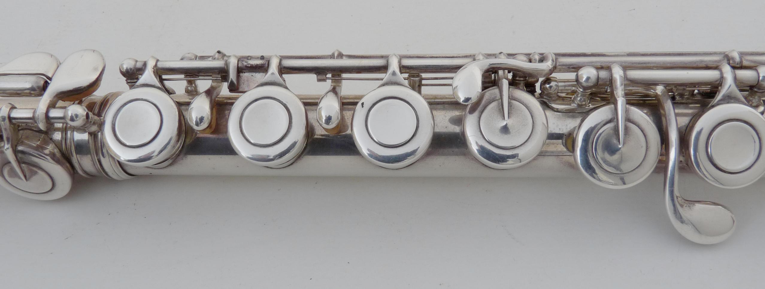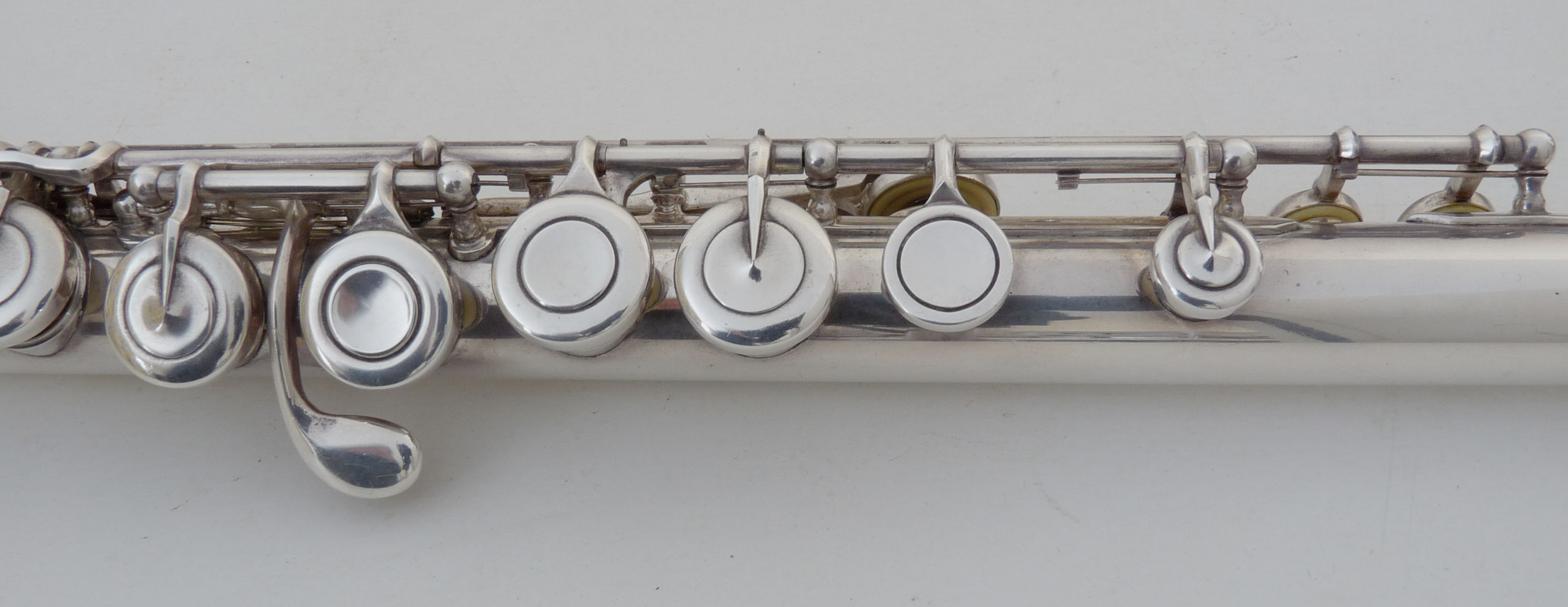C-foot, Bb shake, forged keys and touches, soldered tone holes, gold springs,