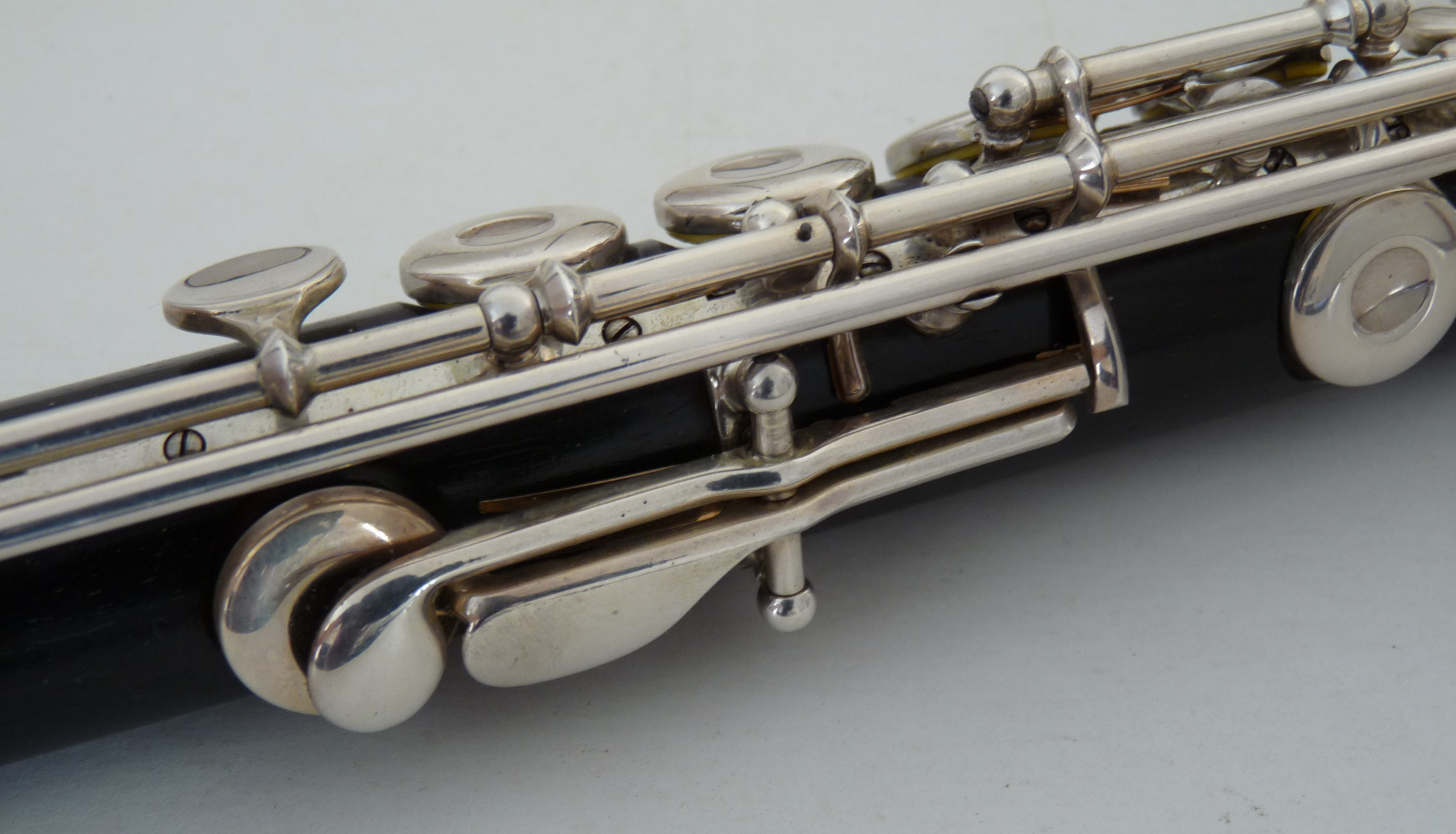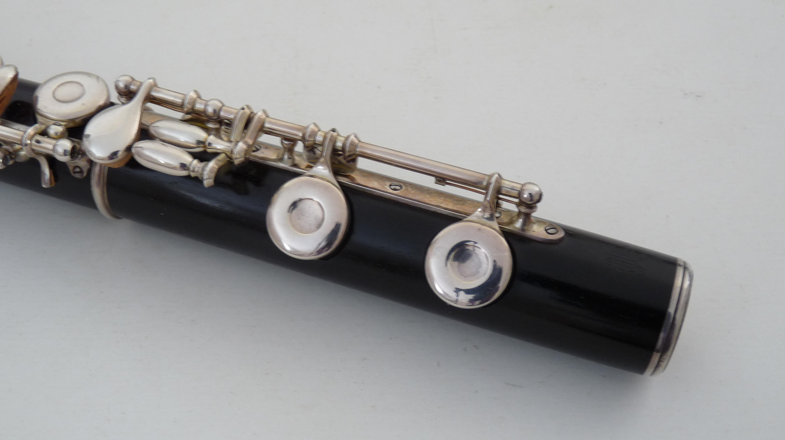 #923, made in 1905. Grenadilla, silver keys and fittings, Y-arms, closed hole,